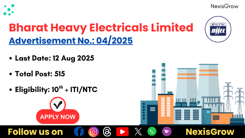 🔧 BHEL Artisan Recruitment 2025 – Apply Online for 515 Posts