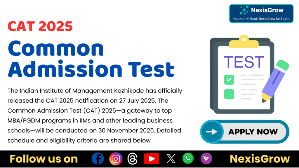 The Indian Institute of Management Kozhikode has officially released the CAT 2025 notification on 27 July 2025. The Common Admission Test (CAT) 2025—a gateway to top MBA/PGDM programs in IIMs and other leading business schools—will be conducted on 30 November 2025. Detailed schedule and eligibility criteria are shared below.