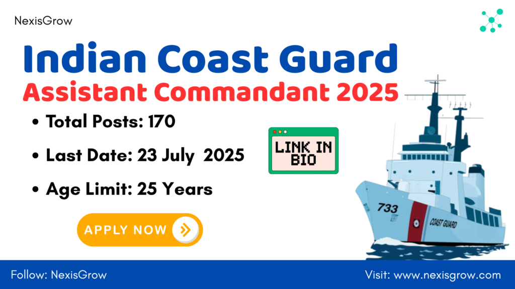 Indian Coast Guard Assistant Commandant Recruitment 2025 – Apply Online for 170 Posts