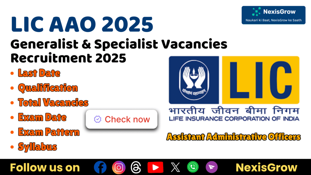 The Life Insurance Corporation of India (LIC) has announced the AAO (Assistant Administrative Officer) and Assistant Engineer Recruitment 2025. A total of 1110 vacancies are available for Generalist, Specialist, and Assistant Engineer posts. The application process will begin on 16 August 2025 and remain open till 8 September 2025. Below are the complete details including important dates, application fees, age limits, educational qualifications, and vacancy details.
