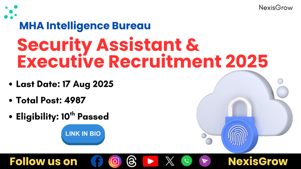 🛡️ MHA IB Security Assistant SA / Executive Recruitment 2025 – Apply for 4987 Vacancies