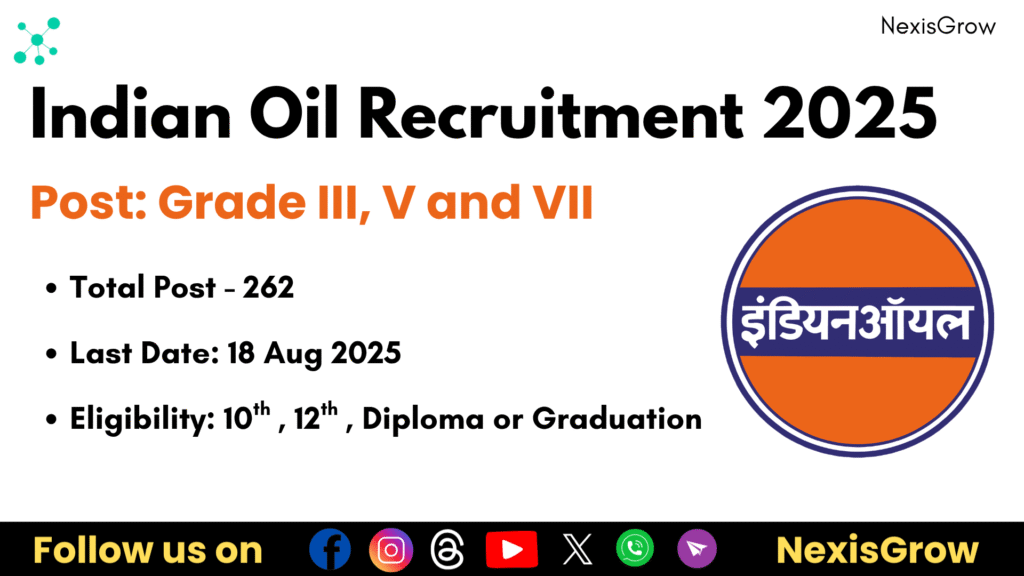 Oil India Limited has released the official notification for the recruitment of Workpersons under Grade III, V, and VII posts. A total of 262 vacancies are available across various disciplines. This recruitment is a golden opportunity for candidates seeking government sector jobs with attractive salary structures. Interested candidates can apply online from 18 July to 18 August 2025.
